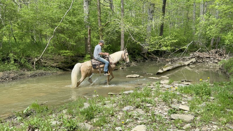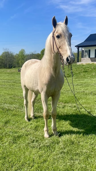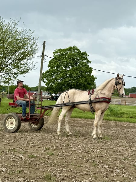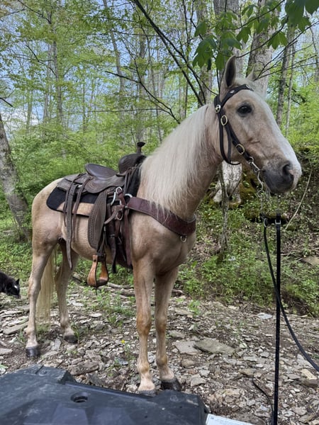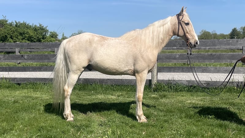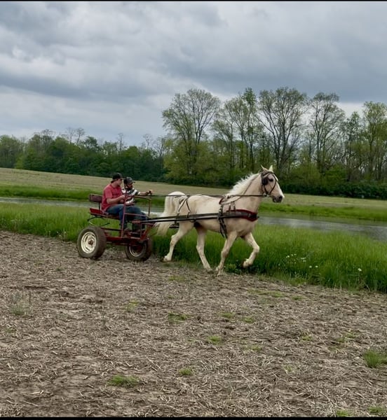 "AVAILABLE ON ONLINE HORSE AUCTION AT www DOT MagicHorseAuction DOT com BIDDING OPEN NOW thru TUESDAY | MAY 13th - BUY IT NOW AVAILABLE! *Final price will be determined on auction site* CONSIGNOR CONTACT INFO: Zach Brandenburg 513-508-3684 LOCATION: Moscow, OH Sunny, this One of a kind gelding is 9 years old and stands 15 hands tall. This is a beautiful palomino gelding with a Snow White mane and tail and Brains out of this world! Sunny trail rides, is traffic safe and even pulls a cart! Sunny walks on a loose rein, is naturally gaited and an easy to sit cantor. Sunny is smooth no matter the speed and gives his rider 100a% every ride, he listens great and aims to please. I feel sunny is a very trustworthy mount and as you’ll see from his videos uncomplicated to handle both under saddle and harness. Most horses will have something that will spook them or make them hesitate but we have not found that with Sunny, he passes out evaluation test with ease and made life easy while working with him as he is a true pleasure to be around. Sunny is a horse my family and I have grown attach to it’s certainly going to be hard to see him go. We’ve been in business for nearly 15 years and I can assure you horses like Sunny are extremely hard to find, first you have to have a horse with a willing mind and then it takes years and years and countless hours to teach them everything that Sunny knows to do so perfectly.