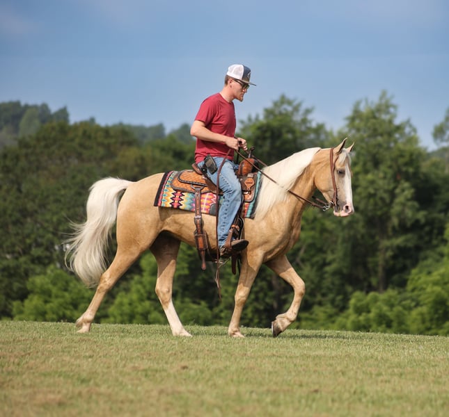 ONLINE AUCTION Place your bids at www.PlatinumEquineAuction.com Starting Bid $3500 Auction ends July 20th 2025 Need a new saddle? Check out White Rock Saddles on our website or Facebook Sooner is an eye-catching stout built, Golden Palomino gelding with a blaze face! He is a Tennessee Walking Horse standing around 14.3hh and he is 4 years old. Sooner has all the experience anyone could ask for but is young enough to do it all again! From field trials to coon hunting at night to just cruising the trails, he can handle it all! Sooner is a super fun horse to ride as he glides along effortless! He has that true 4-beat gait that is smooth for any rider at all speeds. He has been ridden in several states, from Tennessee to Indiana. He has seen everything imaginable and handles everything in stride! He has been exposed to all kinds of wildlife, such as deer or turkey, or other animals like cows or dogs, and will go anywhere that he is asked to. He has ridden many miles in the mountains of Eastern Kentucky and encountered every obstacle possible on the trail. He will go up or down even the steepest slopes, across deep creeks, over downed trees, and all rough terrain while still being sure-footed. He has been ridden in traffic and is very traffic-safe around cars, semis, logs, and dump trucks. If you are looking to blaze a trail but want to do it safely and steadily… Sooner is the horse for you! Feel free to call Trevor Patrick 606-516-8069 with any questions, to make a Buy It Now Offer or to schedule a time to come see him in person. ONLINE AUCTION Place your bids at www.PlatinumEquineAuction.com Starting Bid $3500 Auction ends July 20th 2025 Need a new saddle? Check out White Rock Saddles on our website or Facebook