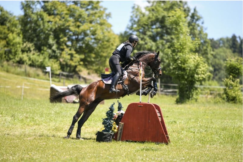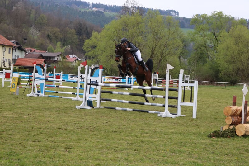 For sale: very stylish and talented Hungarian sport horse! (7 years old) The gelding has been shown up to 115cm, but definitely has the potential for higher! (In training, individual jumps up to 130cm). Additionally, he has been placed with me in eventing up to V105. He stands at 169cm and has a lot of GO. Therefore, he is not suitable for beginners or as a schoolmaster! He jumps from any position and ALWAYS. He is absolutely not a stopper. If you cooperate well with him, you will have a great sport partner for life.