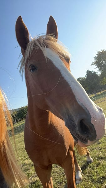 Due to lack of time, we are selling our Tamina. She was born and raised with us, has been extensively trained in professional riding, and has been used for leisure riding. She is registered as a competition horse but has not yet been competed due to time constraints. Tamina has above-average movement, enjoys small jumping courses, and is relaxed and reliable in the terrain. She is familiar with loading, road traffic, and other everyday situations.