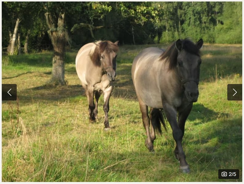 Hallo, wir suchen für unsere beiden schicken Konikwallache Theo und Max ein neues Zuhause. Theo ist ca. 1,45 m groß ( vorne im Bild )und 12 Jahre alt, sein Kumpel Max ist ca. 1,48 m groß und 8 Jahre alt. Sie sind freizeitmäßig geritten und gefahren. Außerdem sind sie leichtfutterig, genügsam und Robusthaltung gewohnt. Beide haben einen Equidenpass sowie einen Zahnpass. Die Zähne wurden letztes Jahr im Mai kontrolliert und behandelt ( Nachweise vorhanden ). Die Impfungen fanden auch im letzten Jahr statt. Beide Koniks sind im Moment "Barhufer". Beim Schmied bleiben sie ruhig und geduldig stehen und hatten auch schon Eisenbeschlag. Auch der Pferdeanhänger ist ihnen nicht fremd. Sie werden nur zusammen verkauft, daher gilt der Preis auch für beide Pferde. Leider müssen wir sie aus Altersgründen unsererseits verkaufen.