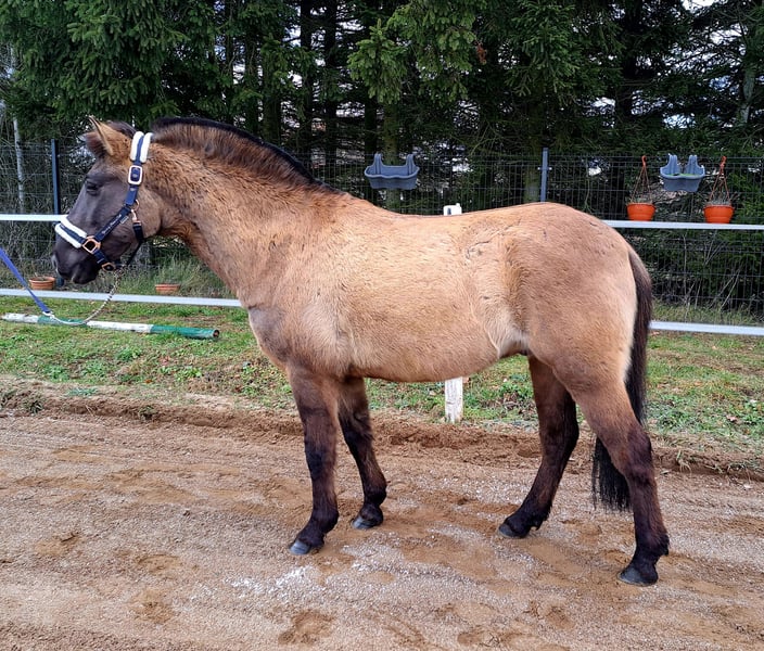 Wunderchöner Milo💗🎠🍬🥕💯 Konikwallach - perfekt für Kinder! Bald 4 j.a ca. 1,42m ( noch in Wachstum) Kinderlieb Schön angeritten und Gelände sicher, auch alleine. Springt gerne. Mit Vollabstammung, Ohne Unarten Top Gesund Offenstall geeignet Standort nähe Görlitz Videos vorhanden. Transport möglich