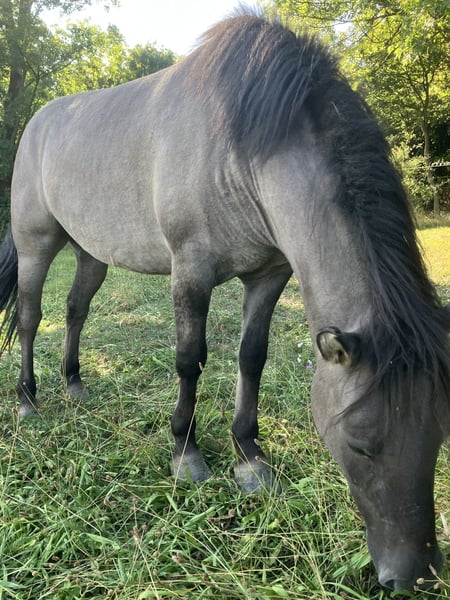 We are selling our beautiful Konik gelding. He turned four years old in June. He has been backed and apparently also ridden. However, he hasn't been ridden for a while, so he would need to be re-started gradually. He is incredibly curious and fearless. He knows and likes children, but he is not suitable for beginners due to his strong yet very affectionate character. He learns quickly and is very agile in the terrain. He has excellent, strong hooves and is barefoot.