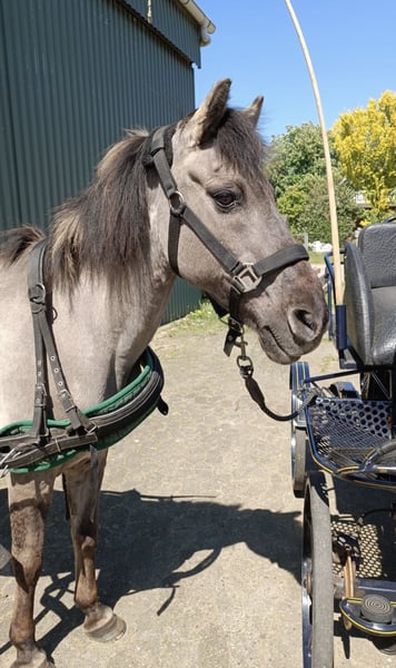 Wir haben Holly im Januar 2024 aus schlechter Haltung gekauft und sehr viel investiert, damit es ihr wieder gut geht. Leider können wir das aber nicht mehr auf Dauer gewährleisten, deshalb suchen wir einen geeigneten Platz für die kleine Maus. Sie hat Asthma, womit sie in Offenstallhaltung keine Probleme hat. Sie hat schlechte Zähne und braucht täglich Heucobs, da sie kein Heu und Gras mehr kauen kann. Wir haben die Zähne ganz am Anfang einmal gemacht und letzte Woche wieder wo ein Zahn gezogen wurde, evtl kann sie jetzt noch ein bisschen besser kauen. -UPDATE- Sie kann wieder problemlos Gras fressen. Sie ist Ekzemerin und muss regelmäßig geputzt werden. Hochwertige neue Ekzemerdecken besitzt sie und mit Decke und Fliegenmaske gehts. Ansonsten hat sie auch noch einiges an Zubehör, was alles mitgegeben wird. Reitbar ist sie aktuell nicht, sie lief immer nicht so gut und wir hatten Mal ne Ostepathin da, aber meiner Meinung nach ist es noch schlimmer geworden. Wir haben sie dann erstmal in Rente geschickt und damit ist sie sehr glücklich und hat auch keine Probleme. Ansonsten war sie immer sehr flott unterwegs und ist auch gerne gesprungen. Kutsche haben wir auch Mal ausprobiert, hat sie auch super mitgemacht. Ich denke, dass man das alles nochmal mit ihr machen könnte. Sie ist super lieb und sehr kommunikativ im Umgang, sie zeigt auch ganz deutlich wenn sie in Ruhe gelassen werden will und macht sonst ganz dicht. Ich glaube sie hat in ihrem Leben schon viel schlimmes durchgemachen müssen und braucht viel Liebe und Geduld. Ich würde mir wirklich wünschen, dass sich jemand findet der ihr noch ein paar schöne Jahre beschert und noch viel Spaß mit ihr hat. Bei Fragen meldet euch gerne. Platz vor Preis!