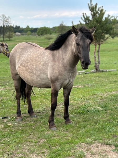 Polish Konik mare with full pedigree and PZHK license. Registered in the main breeding book of the Polish Konik. Sired by proven bloodlines. The mare is respectful towards humans, regularly trimmed and hoofed by the farrier. Our horses are kept in a stabling-free system. She is a healthy, strong, and weather-resistant horse. Assistance with transportation organization is provided upon purchase. A veterinarian is available on-site.