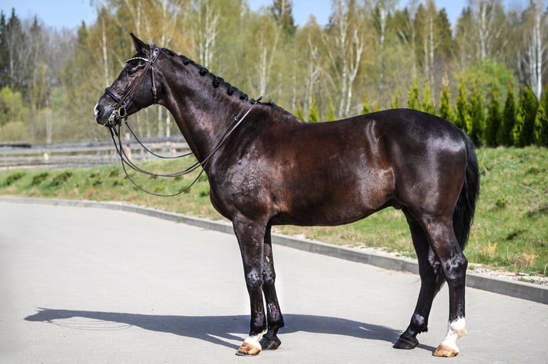 Hallo! Ich bin der Besitzer von KMK Black Jack 🙋 Hier sind die grundlegenden Informationen über diesen wunderschönen Hengst: Er beherrscht das Schulterherein, die Traversalen, die Halben Paraden in allen Gangarten, sowie die Schritt-Pirouetten. Jeder mit einer grundlegenden Dressurausbildung könnte das auf ihm umsetzen. Ein fortgeschrittener Reiter könnte problemlos fliegende Wechsel, Galopp-Pirouetten und einige Piaffen ausführen. Ich kann auf Anfrage Trainingsvideos, zahlreiche hochwertige Fotos und Videos aus unserem Alltag senden. Er hat ein vollständiges Röntgenbild-Set, einschließlich Rücken und Hals, ohne nennenswerte Auffälligkeiten. Keine schlechten Eigenschaften. Große Namen der Dressurszene finden sich in seiner Blutlinie: Grenoble, Krack C, Florencio, United, Ulft. Ich habe Referenzen für mein zuvor verkauftes Pferd in Deutschland. Unsere Geschichte: Die Geschichte mit ihm begann, nachdem ich 2021 nach mehreren Versuchen meine 4-jährige, fast ungerittene KWPN-Stute aus den Niederlanden gekauft habe. Mehrere Versuche bedeuten, dass es sehr schwierig war zu beweisen, dass ich ein legitimer Käufer und kein Händler oder ähnliches bin, eine erfahrene Reiterin und Pferdefrau, die ein echtes Zuhause, ein 5*-Zuhause, bietet. Ich war zweimal in den Niederlanden, habe die Besitzerin (Daantje) meiner aktuellen Stute getroffen, ihre Pferde geritten und Online-Videos aus unseren schönen Ställen in Vilnius gemacht. Seitdem sind wir gut befreundet und helfen uns gegenseitig bei pferdebezogenen Themen. Zurück zu Black Jack: Im Dezember 2021 informierte mich Daantje, dass ein Mädchen aus ihrem Stall mit dem Reiten aufhört und ihren wunderschönen 6-jährigen KWPN-Wallach verkaufen möchte, und sie suchte ein gutes Zuhause. Sie war sich sicher, dass ich gut zu ihm passen würde und dass der Besitzer von Black Jack glücklich wäre, wenn er in ein Zuhause käme, das ich bieten könnte. Ich sprach mit der Besitzerin des Stalls, in dem ich meine Pferde halte, und sie wollte beim Kauf von Black Jack helfen. Das einzige Problem war, dass wir nicht planten, erneut in die Niederlande zu fahren, und es kurz vor Weihnachten war, aber ich vertraute Daantje von ganzem Herzen. Sie machte Videos, damit ich seine Konformation sehen konnte – im Schritt und Trab in gerader Linie, von der Seite, hinten und vorne – er bewies, dass er keine Mängel hatte, alle Beine waren gerade und die Konformation sehr korrekt. Er hatte als 3-Jähriger eine Chip-Operation am Sprunggelenk, und die Röntgenbilder aus dieser Zeit wurden von meinem Tierarzt genehmigt. Am 21.01.2022 kam Black Jack in unseren Stall, und es war das erste Mal, dass wir uns trafen. Er war schöner als auf den Fotos oder Videos, ein echter Barbie Ken. Ich habe auch seinen Sattel und weiteres Zubehör gekauft, da seine vorherige Besitzerin alles verkauft hat. Nach dem Einleben begann ich, ihn in die täglichen Routinen einzuführen – Gewöhnung im Paddock, Kennenlernen der Paddock-Kameraden und Training. Er traf zum ersten Mal in seinem Leben auf tiefen Schnee und war wirklich ein glückliches Kind. Ich habe gelernt, dass er sehr freundlich zu anderen Pferden ist, nie die Ohren anlegt oder quiekt oder tritt. Er läuft gerne im Paddock, wird aber nicht verrückt, auch wenn andere Pferde „Zoomies“ haben. Ich halte es für wichtig, dass er jeden Tag in den Paddock geht, da er sonst unter dem Sattel zu energiegeladen sein kann. Sobald ich mit dem Reiten begann, war ich erstaunt, wie gut ausgebildet er war – Seitengänge und Schulterherein konnten von jedem Reiter ausgeführt werden, und bald hatten wir Traversalen und Halbe Paraden sowohl im Trab als auch im Galopp gesichert. Er ist als Dressurpferd nicht zu heiß, braucht aber definitiv keinen Druck nach vorne. Er ist sehr weich im Maul, erlaubt aber einen Fehler der Hand des Reiters. Er schaut sich gerne die Dinge an, ist aber nicht schreckhaft. Er braucht wirklich einen Klaps auf die Schulter und etwas Zusicherung vom Reiter, und gruselige Objekte verschwinden. Wir machen mindestens alle zwei Wochen einen langen Ausritt ins Feld und in den Wald, und wenn es nicht zu kalt oder dunkel ist (nach Bürozeiten), gehen wir vor jedem Ritt einen 10-minütigen Rundgang in den Vororten des Stalls. Er kann alleine gehen und ist nicht ängstlich, wenn er andere Pferde hinter sich lassen muss. Das Traben und Galoppieren mit ihm auf den Feldern ist einfach fantastisch, weil er sehr sicher auf den Beinen ist. Ich mache gerne einhändige Videos von uns, während wir in der Natur fliegen. Obwohl er freundlich zu allen Menschen ist und andere Reiter akzeptiert, würde ich ihn als „Ein-Personen-Pferd“ bezeichnen, denn er sucht immer nach mir und kommt zum Kuscheln. Er sucht immer nach Zusicherung, ein echter „Mama-Pferd“. Er hat keine schlechten Gewohnheiten und ist wirklich ruhig in seiner Box, wie ein Ken in seiner Plastikbox. Er liebt Essen und es gab kein Futter, das er ablehnen würde. Ich liebe es, dass er ein guter Fresser ist und keine Gewichtsprobleme hat. Er hatte während meiner Besitzzeit nie gesundheitliche Probleme. Er ist im Umgang völlig sicher, liebt das Putzen, steht brav für den Schmied, unter der Dusche, im Solarium, hat keine Angst vor dem Tierarzt und kann im Stall ohne Anbinden gespritzt werden. Seine Zähne wurden regelmäßig von Fachleuten aus Belgien behandelt, Entwurmung, Spritzen, alles war pünktlich. Jeden Monat bekam er eine Körperarbeit/Massage ohne nennenswerte Auffälligkeiten, ich mache auch Karotten-Dehnungen und eine grundlegende Massage vor jedem Training. Da ich einen Vollzeitjob im Büro habe, wurde er neben mir von einer höher ausgebildeten Schülerin geritten, die ihn von Zeit zu Zeit auf Turnieren vorgestellt hat. Einmal trat er in der Kinderklasse mit einer 13-jährigen Schülerin von mir an, weil mein älteres Pferd gesundheitliche Probleme hatte. Sie ritt ihn zum dritten Mal und gewann mit ihm den 2. Platz! Eine glückliche Besitze