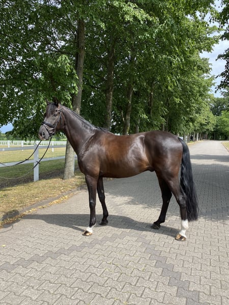 Dieser wunderschöne Rappwallach ist ein echtes Herzenspferd. Seit seinem 3. Lebensjahr in meinem Besitz, hat er sich zu einem ausdrucksstarken, sportlichen Pferd mit viel Persönlichkeit entwickelt. Dressurmäßig gut ausgebildet und fein zu reiten mit Wechseln sowie weiteren Lektionen der Klasse L/M vertraut, zeigt er stets Motivation bei der Arbeit. Er schätzt einen Reiter, der konsequent, aber vor allem fair mit ihm umgeht. Er macht sowohl bei der täglichen Arbeit als auch bei Ausritten ins Gelände großen Spaß. Dabei ist er lieb zu Kindern und Hunden und verträglich mit anderen Pferden. Außerdem kennt er es, auch mal ein paar Tage in einem fremden Stall zu verbringen, zum Beispiel während unseres Urlaubs und frisst dort problemlos. Ausbildung und Turniererfahrung sind vorhanden: Er wurde vielseitig ausgebildet und zuletzt erfolgreich in L-Dressuren vorgestellt, mit Siegen und zahlreichen Platzierungen. Springen ist nicht mehr vorgesehen. Ende 2022 hatte er eine Verletzung, die vollständig auf der Wiese ausgeheilt ist. Nach einem schonenden Wiederantrainieren läuft er seitdem wieder verletzungsfrei und wurde auch auf Turnieren vorgestellt. Seit dieser Zeit steht er barhuf und kommt damit sehr gut zurecht. Aufgrund der Vorgeschichte ist der Preis angepasst. Ich verkaufe ihn schweren Herzens aus persönlichen Umständen. Für ihn wünsche ich mir ein 5-Sterne-Zuhause mit viel Weidegang und einem Reiter oder einer Reiterin, der/die Lust hat, regelmäßig mit ihm zu arbeiten, Freude an der Dressur hat und gern Ausritte unternimmt, ohne dass jedes Wochenende ein Turnier geplant sein muss. Wenn Sie ernsthaftes Interesse haben, freue ich mich über eine Nachricht mit ein paar Worten zu Ihnen – und erzähle Ihnen im Gegenzug sehr gern noch mehr über Jack :)