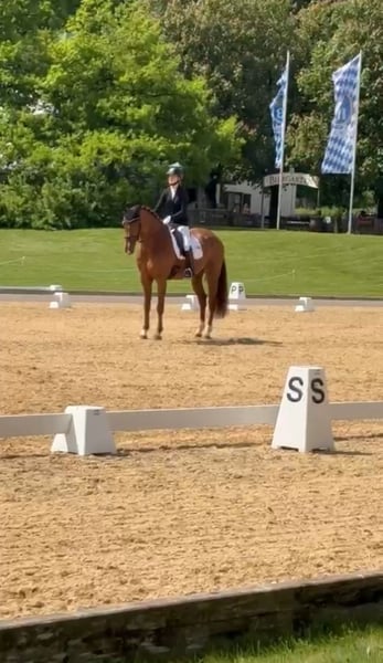 Leichtrittiger Dressurpartner mit viel Potenzial sucht Bestplatz Mit schwerem Herzen suchen wir für unseren wunderschönen Wallach Jelisco ein neues Zuhause. Jelisco ist ein äußerst leichtrittiges Pferd und vermittelt seinem Reiter immer ein sehr angenehmes, harmonisches Reitgefühl. In der Dressur zeigt er großes Talent für höhere Lektionen – insbesondere Seitengänge fallen ihm spielerisch leicht und machen ihn zu einem spannenden Partner, sowohl für ambitionierte Reiter als auch für erfahrene Freizeitreiter mit Freude an feiner Arbeit. Er überzeugt durch seine Rittigkeit und seine Einstellung immer alles richtig machen zu wollen. Als aufmerksames Pferd kann er sich auch mal erschrecken, weshalb wir ihn bei einem fortgeschrittenen Reiter sehen, der ihm die nötige Sicherheit gibt. Auswärts zum Training oder Turnier war er bisher immer ausgesprochen brav und auch ins Gelände zum Ausreiten geht er gerne. Ursprünglich aus der Vielseitigkeit kommend, liegt sein Fokus heute klar in der Dressur. Aufgrund seiner Sensibilität sehen wir ihn nicht im Springsport. Einwandfreie Röntgenbilder aus 2024 liegen vor. Wir wünschen uns für ihn einen einfühlsamen Menschen und einen absoluten Bestplatz, an dem er weiter gefördert wird und ankommen darf. Der Verkauf erfolgt aus persönlichen Gründen. Nur in beste Hände abzugeben. Probereiten 30 € (wird beim Kauf verrechnet). Bei ernsthaftem Interesse freuen wir uns über eine Nachricht.