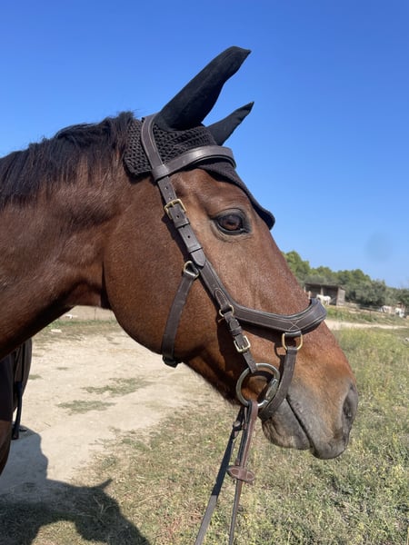 Sehr hübscher Hengst französischer Abstammung, KWPN-Genetik, Jalisco, 12 Jahre alt, 1,70 m groß. Ein Pferd, das seinem Menschen sehr zugetan ist und sich leicht pflegen lässt (Hufschmied, Trocknen, etc. kein Problem). Regelmäßig beim Tierarzt, Osteopathen, geimpft, entwurmt und vom Hufschmied versorgt. Donar ist ein sehr gut ausgebildeter Dressurpferd (Schulter-in, Biegungen, Übergänge, Tempowechsel…), das im Springen bis 1 m leicht zu reiten ist. Ideal für den Hunter, da er nichts scheut (Spinnweben, Stacheln, Fliegen) und eine sehr gleichmäßige Cadence sowie drei schöne Grundgangarten besitzt. Ein tolles Pferd für den Einsatz im Gelände, das vor nichts Angst hat. Donar bleibt ein sehr sensibles und feines Pferd, das einen Galopp 7 benötigt. Er braucht regelmäßiges, abwechslungsreiches Training, um sein volles Potenzial zu entfalten. Auf den ersten Blick wirkt er kühl, doch er wird seine Energie durch den Aufbau einer vertrauensvollen Partnerschaft mit seinem Reiter zeigen. Derzeit lebt er boxiert auf Stroh mit täglichem Auslauf, kann aber auch in einem Paddock mit Unterstand gehalten werden.