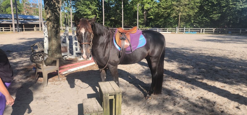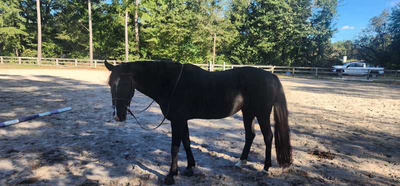 15.1 hand black Dutch Warmblood. Jumper. Registries with both USEF and KWPN. High energy but FUN to ride. Needs a confident rider. Not bite, kick, buck, or rear. Easy to be around with great ground manners. Stands to be mounted and discounted. 3 easy gaits with nice transitions and an easy whoa. Lead changes when you ask. Really nice lil guy.