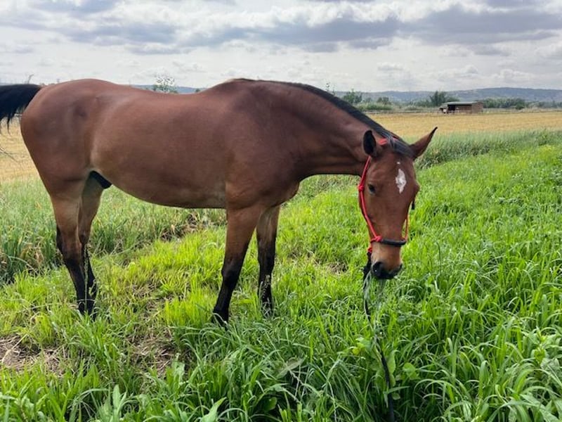 Spectaculaire cheval de loisir, avec beaucoup de force à l'obstacle (contrôlable), il aime sortir au pré, le galop est superbe et très confortable.