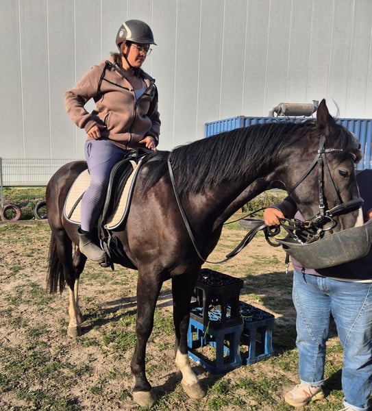 Black Night, genaamd Blacky, is een prachtige 3-jarige zwarte ruin die nog volop in ontwikkeling is. Blacky houdt ervan om met hem te werken. Hij kent grondwerk, longeren, wandelen en we zijn begonnen met de eerste stappen onder de ruiter. Hij leeft in een kleine kudde in een buitenstal met 24/7 hooi. Hij is zeer ontspannen, heeft geweldige bewegingen en is zeker voor veel dingen geschikt.