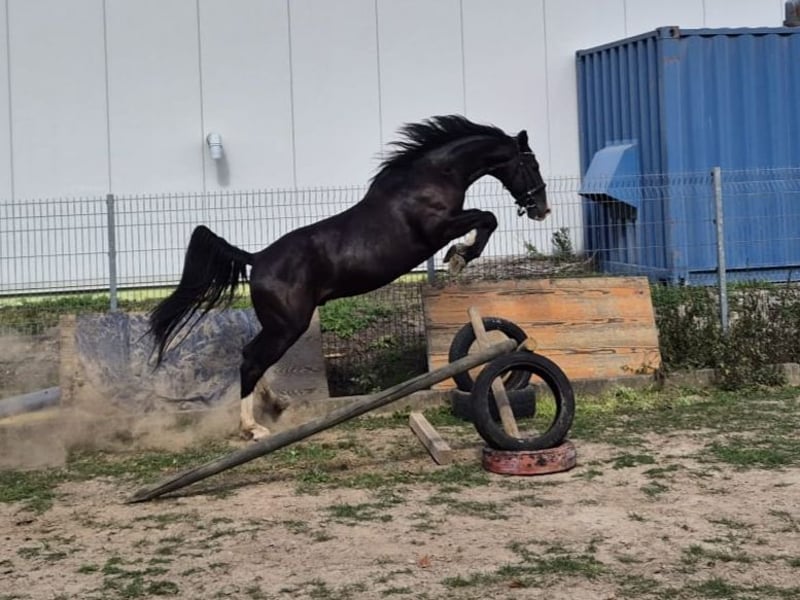 Black Night , genannt Blacky ist ein wunderschöner 3 jähriger Rappwallach der noch voll in seiner Entwicklung steht . Blacky leibr es wenn man mit ihm arbeitet. Er kennt Bodenarbeit , Longe , Spazierengehen und wir haben die ersten Schritte unter dem Reiter begonnen . Er lebt in einer kleinen Herde im Offenstall mit 24/7 Heu. Er ist sehr entspannt , hat tolle bewegungungen und sicher für vieles geeignet.