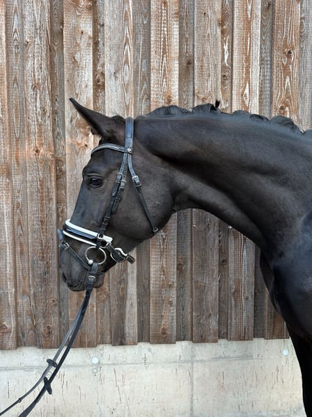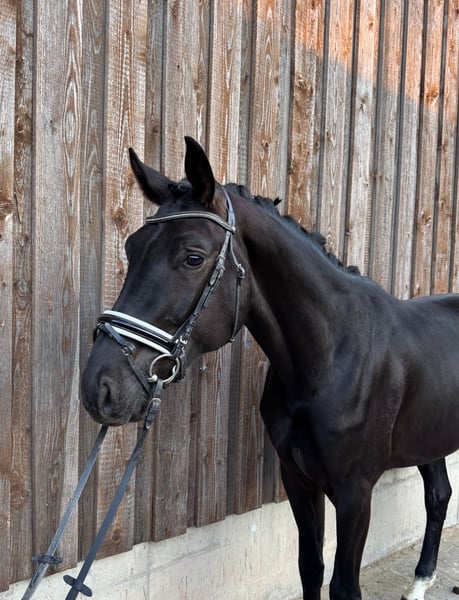 A Charismatic 3-Year-Old Gelding by Fürstenball x Sorento For sale is an impressive approximately 1.72 m tall black gelding (3 years old) with modern pedigree by Fürstenball out of Sorento. This young horse has recently been backed and already handles all three basic gaits under saddle with exceptional calmness and composure. He impresses with very good, elastic movements and a lot of quality in his gaits. He is eager to learn, clear-minded, and consistently cooperative. For variety, he is also introduced to free jumping and performs very well in this discipline. He demonstrates awareness, ability, and a positive attitude over jumps, making him a promising prospect for show jumping or eventing. In daily handling, he is absolutely gentle, affectionate, and very people-oriented—a true companion. He is familiar with other horses in the arena and remains well-behaved and fearless at all times. No nipping, no theatrics—simply straightforward and uncomplicated. He already knows: • Small trail rides • Lunge line work • Farrier visits • Loading without issues A tall, talented young horse with excellent potential for sport and leisure—ideal for someone looking to further develop a quality young horse with a great attitude. Serious inquiries are welcome via message. A trial ride will incur a fee of €30.