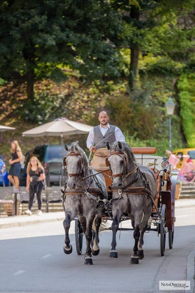 Stajnia REPNIK Primož Repnik prowadzi rodzinny biznes już od trzeciego pokolenia – z taką samą pasją, z jaką jego przodkowie kiedyś położyli fundamenty tego gospodarstwa. To, co jest codziennością w stajni REPNIK, to nie tylko szkolenie koni zaprzęgowych – to filozofia życia, w której najważniejsze są zaufanie, cierpliwość i prawdziwa miłość do koni. Od dziesięcioleci tutaj towarzyszy się koniom od najmłodszych lat – dorastają w własnej stadninie ogierów, w naturalnym środowisku, z dużą ilością ruchu, świeżym powietrzem, wysokiej jakości paszą i kontaktami społecznymi. Dopiero gdy są fizycznie i psychicznie gotowe, rozpoczyna się ich delikatne szkolenie – z doświadczeniem, spokojem i wyczuciem dla każdego konia z osobna. W ten sposób powstają zrównoważone, niezawodne i chętne do pracy partnerki na czas wolny, sport i tradycję. Konie z stajni REPNIK są już od dawna znane i cenione na całym świecie. Niektóre z nich brały udział w międzynarodowych wydarzeniach, takich jak Windsor Royal Horse Show, pod nowymi właścicielami, inne zachwycają podczas Festiwalu Karl-May, a także przyciągają uwagę podczas pokazów tradycyjnych zaprzęgów. Te konie noszą odcisk domu REPNIK – łączą w sobie urodę, serce i zaufanie. Niezależnie od tego, czy w sportach zaprzęgowych, na pokazach czy w prywatnym zaprzęgu – wszędzie, gdzie się pojawią, poruszają ludzi swoją spokojem, obecnością i elegancją. Dla Primoža Repnika i jego rodziny każdy etap szkolenia to wspólna droga – od młodego, nieposkromionego konia, po doświadczonego partnera zaprzęgowego. I właśnie ta więź czyni stajnię REPNIK tak wyjątkową: konie, które są szkolone z sercem i rozumem – dla ludzi poszukujących prawdziwego partnerstwa.