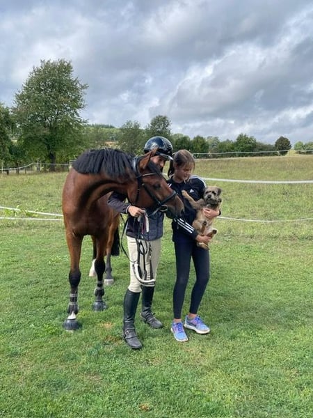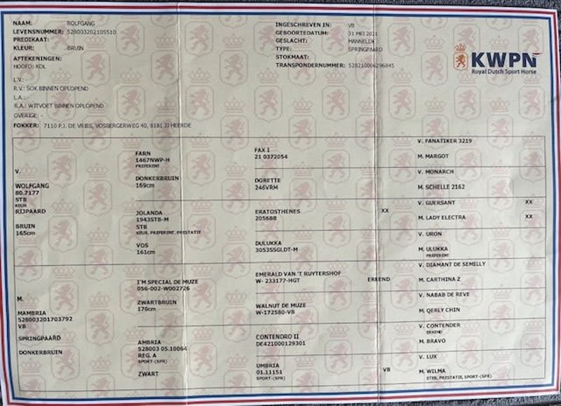 Rolfgang – KWPN-Wallach mit Spitzenabstammung: Wolfgang × I’m Special de Muze Rolfgang ist ein 2021 geborener KWPN-Wallach (1,64 m), der durch seine außergewöhnliche Abstammung und seinen Charakter begeistert. Er stammt ab von Wolfgang (Farn × Eratosthenes xx) – einem der legendärsten Vererber der KWPN-Zucht, dessen Nachkommen bis Grand Prix- und Olympiaerfolge vorweisen können – und aus einer Mutter von I’m Special de Muze (Emerald × Nabab de Rêve), einer der aktuell erfolgreichsten Linien der modernen Springpferdezucht. Diese Verbindung vereint das Beste aus zwei Welten: die klassische Härte, Rittigkeit und Leistungsbereitschaft Wolfgangs mit der modernen Sprungtechnik, Vorsicht und dem Blut des de Muze-Stamms. Rolfgang selbst überzeugt durch seine Menschenbezogenheit und seine beeindruckende Gelassenheit – er geht an allem vorbei, bleibt immer klar im Kopf und zeigt eine natürliche Balance unter dem Reiter. Für sein junges Alter ist er auf Top-Level ausgebildet und kann sofort eingesetzt werden. Ein Pferd für Kenner und Liebhaber, die Qualität, Charakter und Abstammung gleichermaßen schätzen. Dieses Pferd wird ausschließlich in beste Hände verkauft – ein 5-Sterne-Zuhause ist Voraussetzung. Der passende Platz steht dabei ganz klar vor dem Preis.