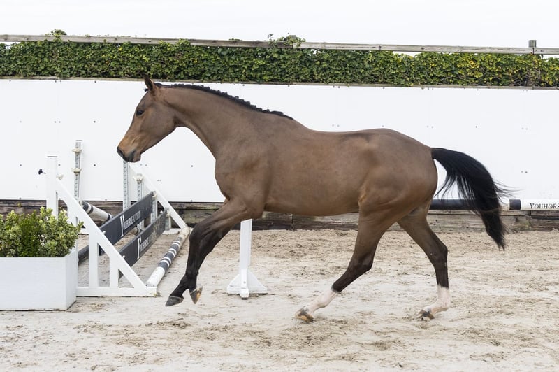 Very beautiful model with a lot of quality and presence. Lightly ridden and shows a good attitude. A horse with a lot of blood, but well-mannered in handling. Sire PEGASE VAN ’T RUYTERSHOF – 1.55m level Modern sire with scope, technique and proven sport genes. Dam AMBER-HIVETTE – no sport results Damline / family Granddam: HIVETTE – 1.30m Further in the line: NAPOLEON – 1.60m PAPILLON ALEZAN – 1.40m MISS HIVETTE – 1.35m ENZO – 1.35m ZENZATION – 1.45m Approved stallions in the line: COMME IL FAUT, CORNET OBOLENSKY, CARTANI, GOODTIMES, NIMMERDOR