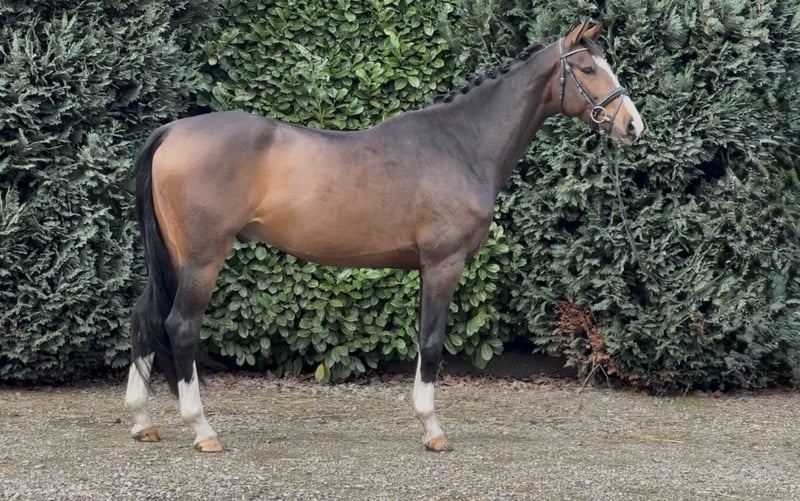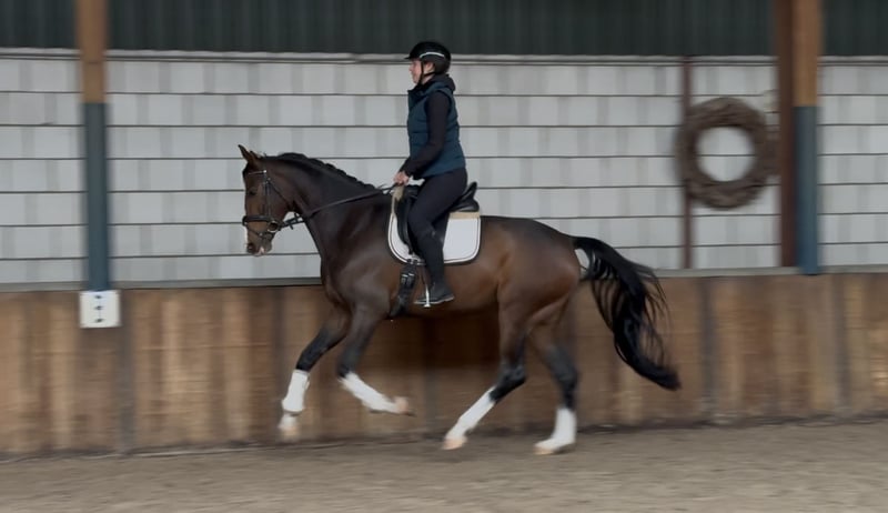 Fantastic 4-year-old gelding. Straightforward, easy to ride, and super well-behaved! 16.1 hh. He is KWPN (Kilian x Krack C) dressage-bred, from a dam line rich in performance horses with many sport horses! This top horse certainly inherited his talent! He shows great potential, moves well, and is already a pleasure to ride! Thanks to his gentle and calm temperament, he is suitable for many riders/amateurs. He is also well-behaved on unfamiliar terrain and easy to load. He is free of stable vices! Oud Gastel, NL 📞 0031-610197456