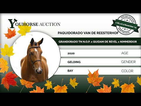 No shortage of scope, just like his sire Grandorado. The five-year-old Paquidorado van de Reesterhof is a large-framed showjumping horse with a nice jumping technique. Sire Grandorado TN N.O.P. is highly successful with Willem Greve at the top level and stands out with his offspring. From his first breeding years, 50 are already jumping at 1.45m, 1.50m or 1.55m level, including the approved stallions Lamaze TN, Ladalco-Z, Landorado A J and Lewandowski. Ten offspring are already 1.55m Grand Prix. Dam Charming Sinaa (Quidam de Revel) is a KWPN elite mare who competed at 1.30m level. She already gave two international showjumping horses: Grenadier Volo (1.45m level) and the nine-year-old Newstar (1.40m level). Granddam Irisinaa (Nimmerdor x Purioso) produced the famous Grand Prix showjumping horse Mac Kinley, so successful with Rolf-Göran Bengtsson, winning Olympic team silver at Athens 2004 and placing fourth individually. https://youhorse.auction/en/auction/Paquidorado-van-de-Reesterhof-GRANDORADO-TN-x-QUIDAM-DE-REVEL