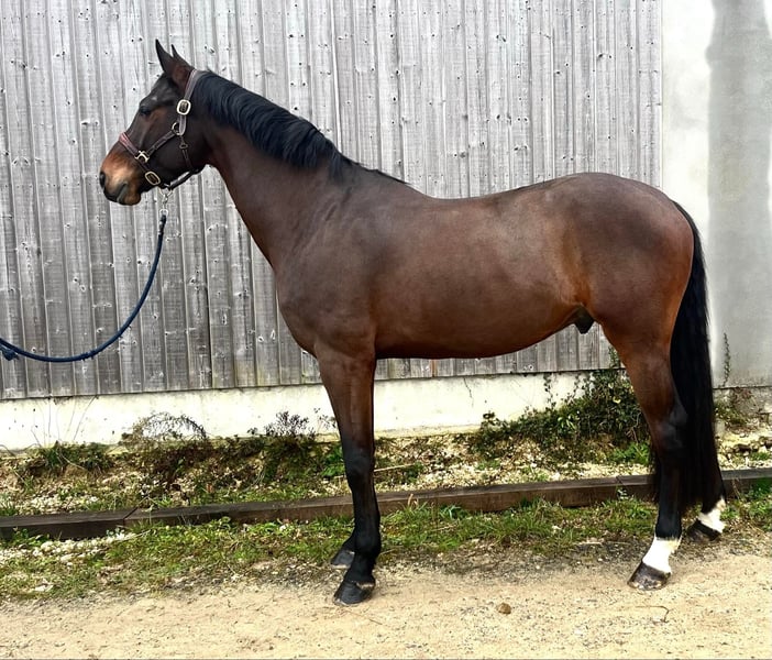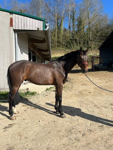 Discover this stunning KWPN gelding, born in 2020, with an elegant dark bay coat. Standing at 16.1 hh, he combines impressive stature with finesse, making him ideal for a rider seeking a versatile and promising horse. This young horse, already introduced to eventing competitions, possesses an excellent temperament, great ease of learning, and a well-balanced attitude. His training in eventing gives him good dynamism, confidence in jumping, and the ability to excel in demanding equestrian disciplines. His KWPN pedigree guarantees high-quality bloodlines, known for producing well-balanced horses talented in dressage, show jumping, and cross-country. His dark bay coat gives him a noble and distinguished appearance, perfect for an ambitious rider looking to develop a complete competition horse. This promising gelding is ready to continue his progression in the sport and is sure to appeal to a passionate rider or owner seeking a reliable and talented partner.
