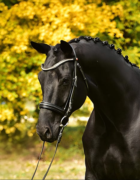 Ofrecemos un talentoso semental de sangre caliente en venta. **Características:** - **Raza:** Sangre caliente - **Sexo:** Semental - **Año de nacimiento:** 2019 - **Color:** Marrón oscuro - **Altura:** 172 cm - **Área de uso:** Doma Este impresionante semental no solo destaca por su elegante apariencia, sino también por su naturaleza sensible y su disposición para aprender. Ya ha adquirido sus primeras experiencias en el deporte de doma y muestra un gran potencial para seguir progresando. Es tranquilo en el manejo, bien educado y es adecuado tanto para jinetes experimentados como para principiantes ambiciosos que deseen crecer junto a él. Si está interesado o necesita más información, ¡esperamos su mensaje! ¡No pierda la oportunidad de conocer a este prometedor semental!