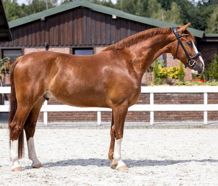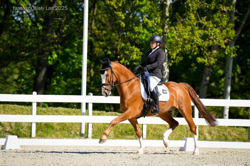 Zum Verkauf steht ein 7-jähriger KWPN-Wallach mit einer Größe von 1,58 m (genau vermessen, auf den Fotos ist eine Person mit 1,65 m zu sehen). Er ist für die Klasse N im Dressurtraining vorbereitet und beginnt, Elemente der Klasse C zu erarbeiten. Der Pferd wird vielseitig genutzt, unternimmt häufig Ausritte allein sowie mit anderen Pferden, arbeitet an Cavaletti und überwältigt gelegentlich kleine Hindernisse (er wurde nie im Springen ausgebildet, springt aber ab und zu vom Boden ab). Er hat bereits mehrfach an regionalen Turnieren bis inklusive Klasse N teilgenommen – der Besitzer hatte keine Ambitionen auf mehr Turniererfahrung. Der Wallach wurde aus den Niederlanden importiert, stammt von ausgedehnten Weiden und wurde mit 4 Jahren eingeritten. Seitdem wird er von derselben erfahrenen Person geritten. Er wurde nicht von Kindern oder Anfängern genutzt, jedoch haben schon mehrere Personen unterschiedlichen Alters und Erfahrungslevels ihn geritten. Er ist neugierig, freundlich und menschenbezogen. Bei der Pflege, beim Satteln, beim Ausführen auf die Weide, beim Tierarztbesuch und beim Hufschmied zeigt er sich bisher stets problemlos und vorbildlich. Er ist mit anderen Pferden auf der Weide zusammen und hat sich bisher mit allen gut verstanden. Es besteht die Möglichkeit, ihn mit einem passenden Devoucoux-Sattel zu erwerben (Aufpreis 15.000 Euro). Videos (Turnier in Klasse N sowie zahlreiche Aufnahmen von Ausritten, Ergebnissecreenshots sende ich Interessenten gerne per WhatsApp). Ein Ratenkauf oder Tausch gegen ein anderes Pferd sind nicht vorgesehen. Standort – Niederschlesien – Reitschule Wierzbna Biały Las (bei Świdnica und Żarów).