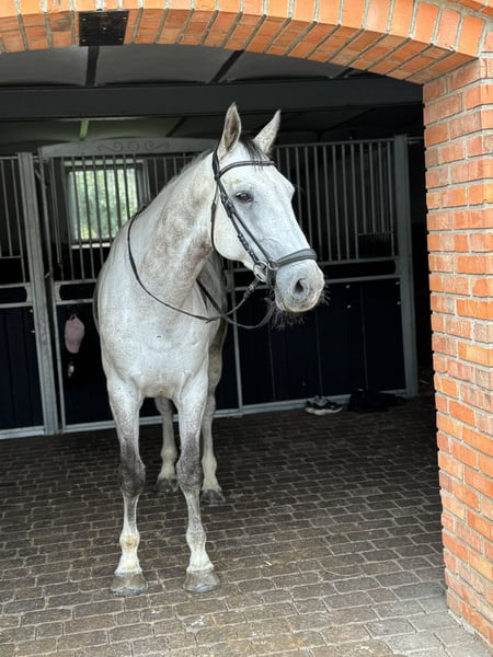For sale – 7-year-old gray gelding Narcos N I offer for sale an exceptional gelding Narcos N, 7 years old (2018), gray, 172 cm, healthy and well-kept. This horse competes in competitions up to class P. He jumps confidently, never stops – always tries to help the rider. An ideal sport horse for an ambitious teenager or an adult looking for a safe partner for further development. Narcos is calm and well-mannered, easy to handle in daily care, with no bad habits. Under saddle, he is eager to work, stable and predictable, providing a sense of security even for less experienced riders. The horse is fully healthy, regularly shod, vaccinated, and dewormed. He has a very good TUV examination. Narcos N is a horse that combines safety and reliable character with sporting potential – an ideal candidate for a first sport horse for a junior or as a horse for a higher level for someone wanting to progress.