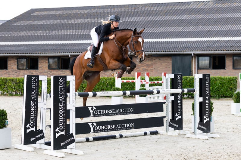 The seven-year-old Nul Punt Nul VK still comes across a bit green for his age. He starts a little spooky but relaxes after a few jumps. A showjumping horse with plenty of scope and carefulness. He has an honest character, but in our view is not the right match for a beginner amateur. His full brother Heineken VK VDL (1.35m level) is KWPN approved. Sire Zirocco Blue is also known for his scope and quality. He jumped at the highest level for many years with Jur Vrieling and has already produced more than sixty 1.60 Grand Prix horses. Of these, Eddie Blue with Devin Ryan (USA), Elysium with Hans-Dieter Dreher (GER) and Giborne VDL with Daniel Coyle (IRL) are even classified at 1.70m level. Dam is the well-known Regina Adelheid Z (Rebel Z), who competed at 1.35m level. She produced ten offspring at 1.30m and higher. Her sons Regino (Animo), approved by the KWPN, and JK Horsetrucks Alme Adelheid Z (Animo) reached 1.60m and 1.50m respectively. Great-granddam Jasperina (Ramiro Z) performed at 1.50m level; her dam Gracina (Jasper) competed at 1.40m level. Talk about performance mares…