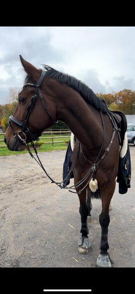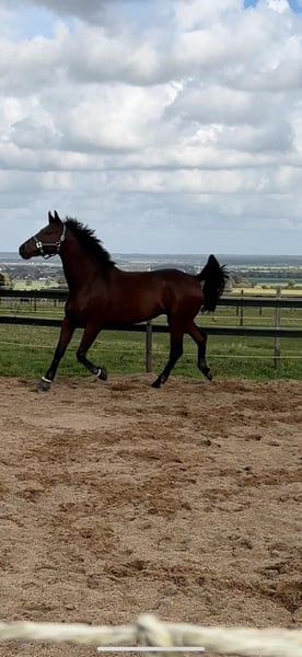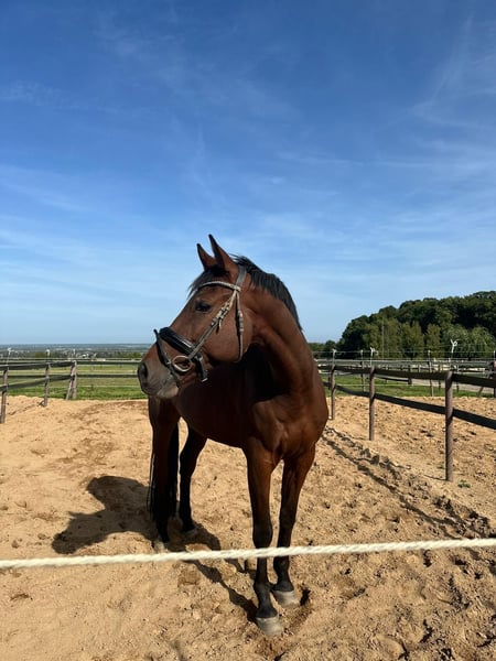 For sale is an impressive dark bay KWPN gelding with excellent dressage pedigree: Vivaldi x Expression (Jazz x Vincent) x Goodtimes. "Tachudo" impresses with three clear, elastic gaits, a large frame, and an honest, people-oriented character. He is a pleasant ride, fine in contact, and always eager to perform. 🎓 The gelding is trained up to A-level and already knows many movements of class L. He has been regularly vaccinated, dewormed, veterinary checked, and osteopathically treated. A health certificate with X-rays (no abnormalities) is available and can be viewed at any time. ⸻ 🔹 Highlights: ✅ Large frame, correctly built, very typy ✅ Very well-behaved in daily handling – also in trailer and at the blacksmith ✅ Excellent rideability & training under professional guidance ✅ Absolutely healthy – ideal for ambitious leisure riders and beginners in competition. ⸻ 📞 Contact & Viewing: Viewing and trial riding possible by appointment. 📍 Location: Meckenheim near Bonn 📸 Photos & videos available upon request