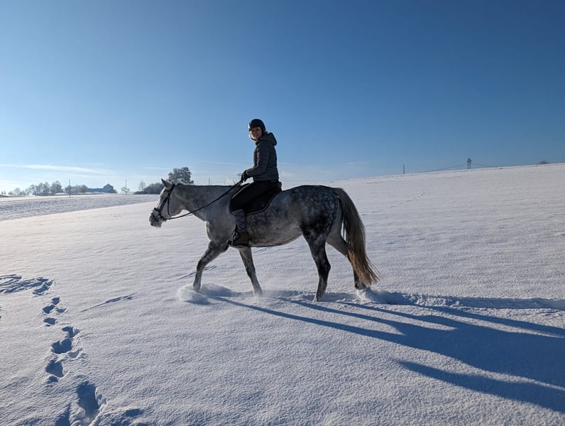 Diese Stute ist sehr feinrittig und möchte mit korrekten, ruhigen Hilfen geritten werden. Sie reagiert sensibel auf ihren Reiter und legt Wert auf eine klare, sichere Kommunikation. Daher testet sie auch gerne mal ihre Grenzen und braucht einen erfahrenen, souveränen Reiter. Im Gelände ist sie absolut zuverlässig – sowohl alleine als auch in der Gruppe. Mit Kindern geht sie brav im Schritt ins Gelände. Aufgrund ihres Go’s und ihrer Sensibilität ist sie jedoch kein Anfängerpferd. Sie möchte täglich beschäftigt werden und liebt Abwechslung: Bodenarbeit, Zirkuslektionen, Longieren, Ausritte oder Dressurarbeit machen ihr gleichermaßen Freude. Sie arbeitet motiviert mit, lernt sehr schnell und zeigt dabei stets Spaß an der Arbeit. Bei mir wurde sie nicht mehr gesprungen. Vom Vorbesitzer liegen jedoch Videos vor, auf denen sie bis Klasse A gesprungen wurde. Abgerundet wird sie durch ihre tolle Abstammung, die ihr Potenzial zusätzlich unterstreicht. Ein tolles Pferd für ambitionierte Reiter, die Freude an vielseitiger Arbeit und einem sensiblen Partner haben. Ich wünsche mir für sie tägliche Koppelzugang oder einen Offenstall.