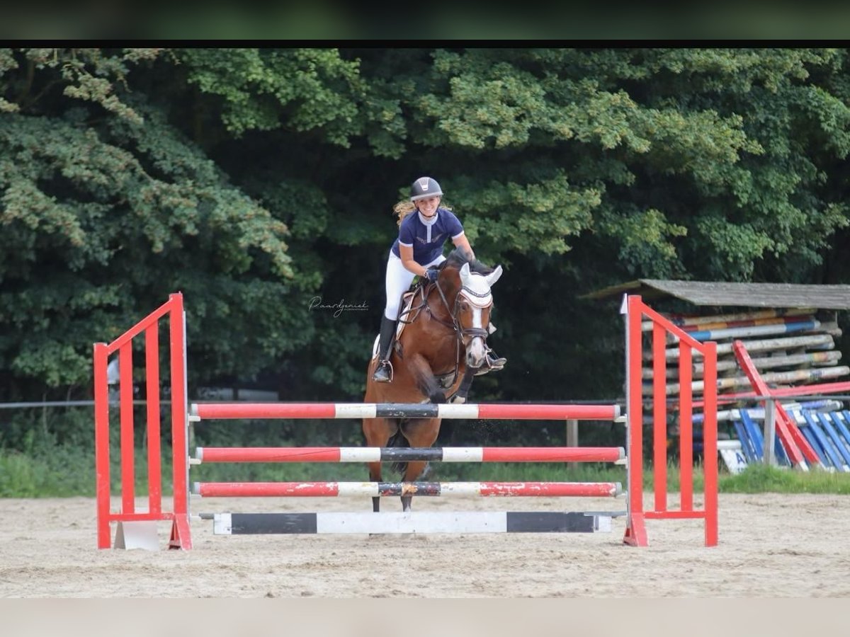 Onze lieve Ella mag iemand anders heel gelukkig maken. Ella wordt in augustus 15 jaar, ze heeft een mooie afstamming; Glasgow-w van het Merelsnest x Larino. Ella heeft in het verleden internationaal gesprongen, maar is nu meer toe aan een lager niveau. Wij zien haar het liefst bij iemand bij wie ze zeker nog lekker veel kan trainen, naar buiten gaat, bosritjes doet en natuurlijk heel veel liefde krijgt. Wij doen haar met veel verdriet weg omdat we een paard zoeken die nu wel hoger gaat in de sport. Ella is lief, sociaal, en werkt hard. Ze is verkeersmak, trailermak, bomproef en braaf op buitenrit (alleen en met andere paarden). Ze heeft wel een zekere ruiter nodig en genoeg beweging, dus absoluut geen beginner. Wij denken dat ze op 80/90 cm nog prima kan springen op concours.
