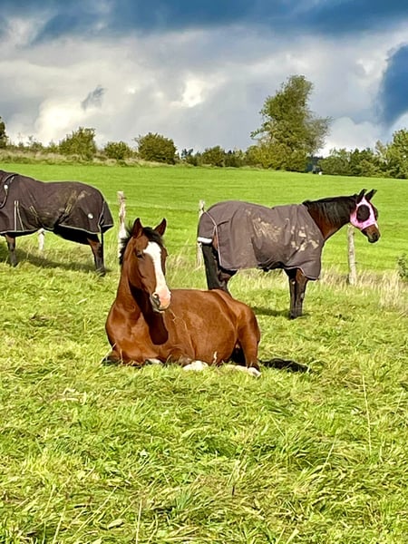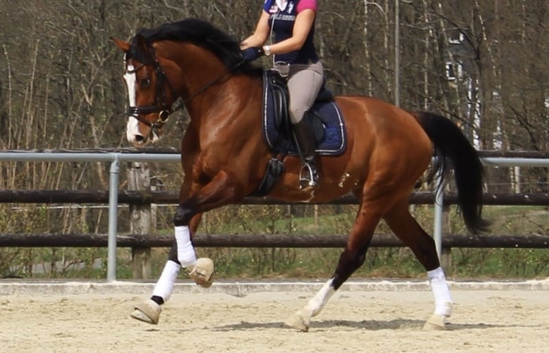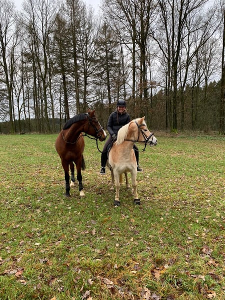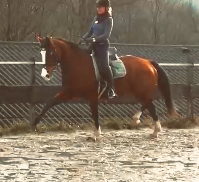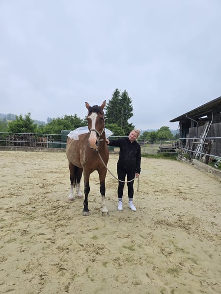 Wir verkaufen schweren Herzens unsere liebe Püppi. Da ich im letzten Sommer ein Kind bekommen habe, muss ich mir leider eingestehen, dass ich es zeitlich nicht mehr schaffe, Püppi gerecht zu werden und ich möchte ihr gegenüber nicht unfair sein. Offiziell „Je m‘appelle Püppi“ ist nun seit sechs Jahren bei mir. Püppi ist ein echtes Arbeitstier, möchte gerne gearbeitet und gefördert werden, fordert dabei aber auch den Reiter. Nie macht sie etwas Böses, das den Reiter gefährdet, aber sie braucht einen sicheren Reiter, der sie über den Sitz mit wenig Hand reiten kann. Oft ist sie ein kleines Hasenherz, wobei sie auch hier nichts Böses macht, doch einen Reiter benötigt, der voll drinsitzt, ihr Sicherheit gibt und mit sehr viel Ruhe mit ihr umgeht. Jemand, der ein Pferd für „mal eben ne Runde reiten“ sucht, ist hier fehl am Platz, das stresst sie nur. Mit ihrer Vorbesitzerin ist Püppi viel Turnier gelaufen, ist M gegangen und hat L gewonnen. Sie hat ordentlich Schwung und einen ausgeprägten Vorwärtsdrang, deshalb auch hier nochmal - man sollte ein sicherer, routinierter Reiter sein!!! Momentan ist sie durch meine Schwangerschaft und den Zeitmangel nach der Geburt nicht im Training, doch willig zu arbeiten, ist sie zu jeder Zeit! Hat man Püppi auf seiner Seite, liebt sie es zu kuscheln und zurückzukraulen. Sie geht gerne im Wald spazieren, joggt auch neben einem her und ist beim ausreiten sehr lieb, sowohl allein, als auch mit anderen Pferden. Sie geht lieb als Handpferd in allen drei Gangarten. Im Moment halten wir Püppi in einer Paddockbox mit Herdenzeit auf einem separaten Paddock im Winter und 24/7 Wiese im Sommer, sie stand aber auch schon in einer Stutenherde mit 15 anderen Stuten im Offenstall, was ihr sehr gefallen hat. Sie ist lieb beim Schmied und beim Tierarzt, lässt sich verladen (fährt aber gerne breit). Püppi hatte 2023 einen Schaden am Unterstützungsband und im Anschluss am selben Bein eine Hufgelenksentzündung, die wir zweimal spritzen lassen mussten. Seitdem hatte sie damit keine Probleme mehr. Ich würde mir für sie jemanden wünschen, der gerne und ambitioniert in der Dressur arbeiten möchte, aber keine Turnierambitionen hat! Jemanden, dem es wichtig ist, sein Pferd zu lieben, ihr vor allem Ruhe, Zeit und ein wunderschönes, artgerechtes Zuhause gibt. Wir geben Püppi nur in allerbeste Hände ab! Platz vor Preis.