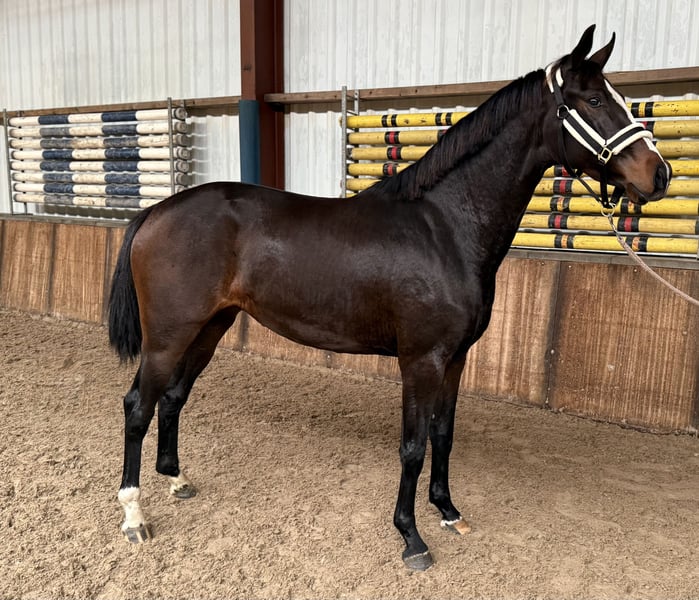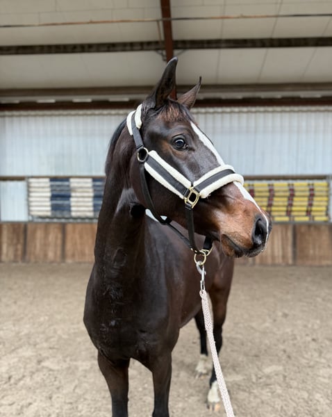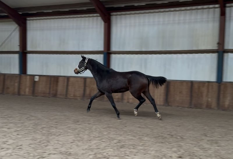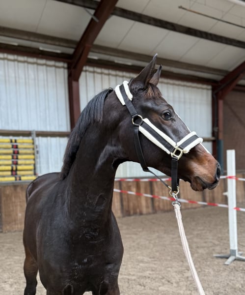Jameson RS2 x Johnson A horse with excellent movement! Still quite green and fully trainable to suit individual preferences. Correct conformation with good legs and no stable vices. She is currently approximately 1.63 m (16.1 hh) and will naturally continue to grow! She is only 2.5 years old. In the stable, she already allows herself to be groomed well and is very well-behaved. She has also been on a trailer before, which went smoothly! Oud Gastel, Netherlands ☎️ +31 610197456