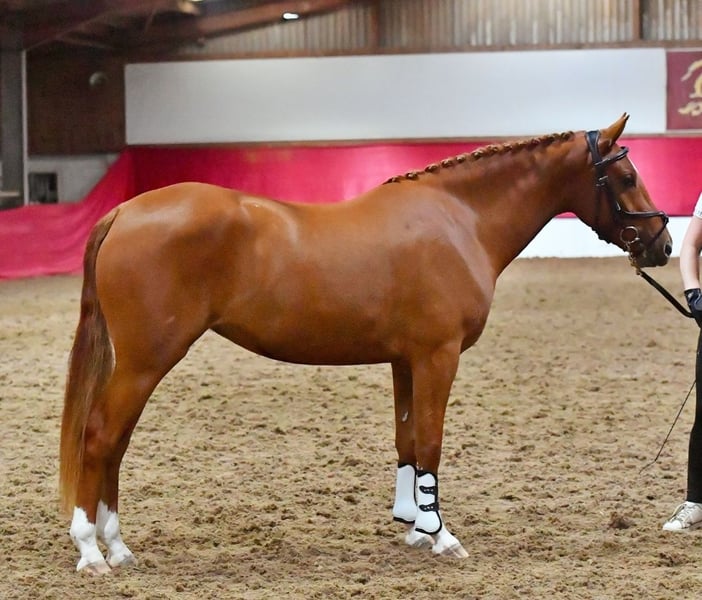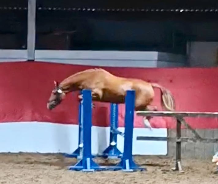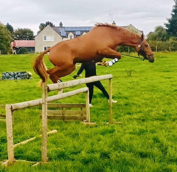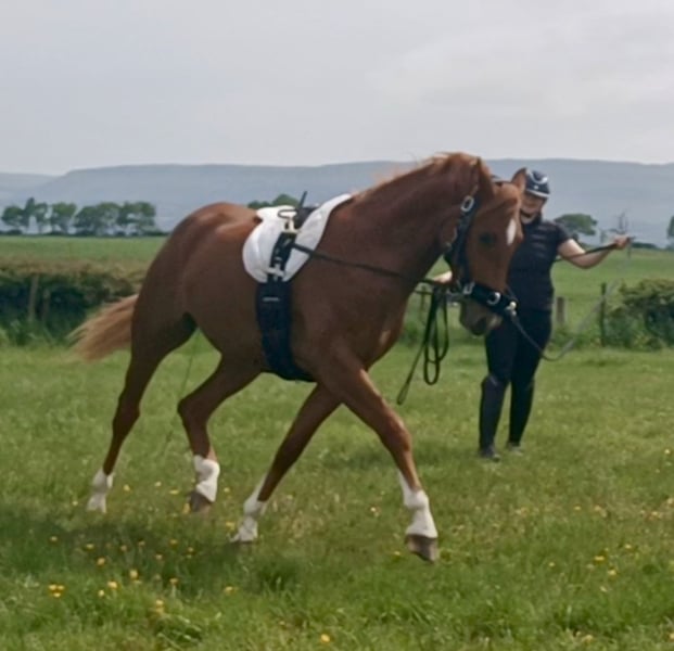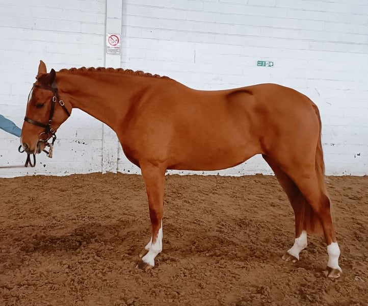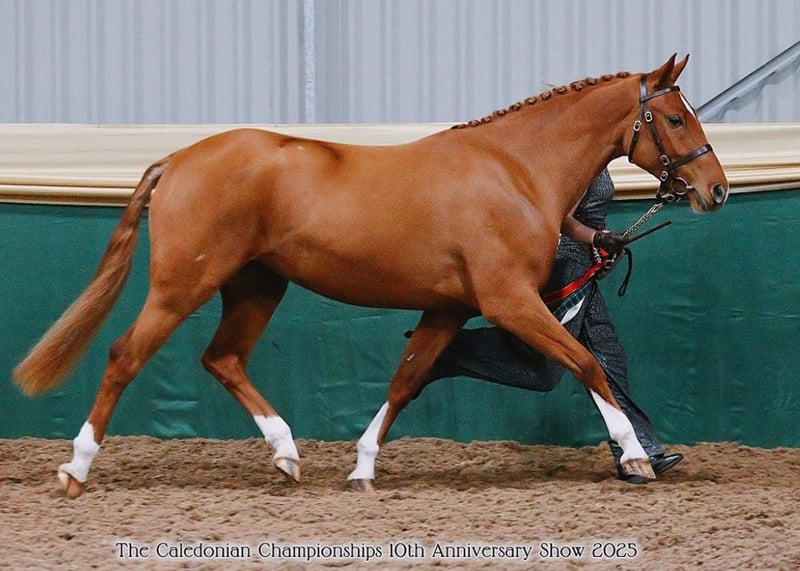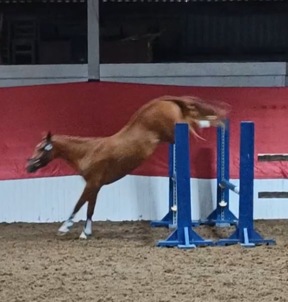 For your consideration, Miss Aurum Persica (peaches to her friends 🧡) Standing at 14.1/14.2 (roughly) 2022 3 year old mare. High gold premium/ 9.5 vetting at British breeding futurity, all in agreement that peaches has amazing potential. Loose jumps 1.40 with ease & room to spare. Very successful in hand showing with championships under her belt, qualified for STARS champion of champions in her first few shows and gained a 1st, and 2x 2nd place in the Caledonian championships 2025 making it into 3x championships and a golden ticket to supreme Handler of the show. Balanced, uphill & flashy paces Fabulous conformation & nicely compact Very lightly backed (sat on, walking & trotting under saddle with no issues, proving to be very straightforward!) Lunges, long reins & pony up hacks very well. Super good to clip, box, farrier, plait, bath etc very well handled! Can be left her by herself with no problems at all. Super cheeky and affectionate personality, very trainable attitude and aims to please. Doesn't realise she's a chestnut! 😂 A super talented young horse with a very bright future for showing, showjumping or eventing. Viewings are more than welcome once she moves yard in the next few weeks. Low 🖐🏻 figures required, no time wasters or daydreamers. Feel free to PM for more information, photos, videos etc. 📍 Based central Scotland, PM or call 07802200228.