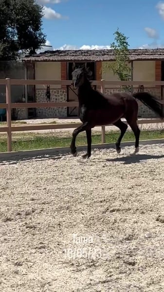 Descripción: En venta espectacular potra KWPN nacida en 2023, con un pedigree excepcional diseñado para el más alto nivel de Doma Clásica. Tiana combina elegancia, tres aires de gran calidad y un carácter inmejorable. Línea Genética: Su árbol genealógico reúne a los sementales más influyentes de la cría moderna: Padre: Imagine (hijo del gran Chippendale). Madre: Garushi, por el legendario Vivaldi, semental que ha revolucionado la doma europea. En su línea materna y paterna encontramos nombres como Jazz, Sandro Hit y Krack C, garantizando una base sólida de movimientos elásticos, fuerza en el tercio posterior y una presencia imponente en pista. Características: Alzada actual: 165 cm (con gran proyección de crecimiento). Movimientos: Destaca por un galope muy equilibrado y un trote con mucha suspensión y libertad de espaldas. Carácter: Es una potra noble, acostumbrada al contacto humano y con gran facilidad para el aprendizaje. Potencial: Debido a su morfología y genética, es una apuesta segura tanto para jinetes profesionales que busquen un caballo de futuro para Gran Premio, como para ganaderos que deseen incorporar líneas de sangre contrastadas a su yeguada.