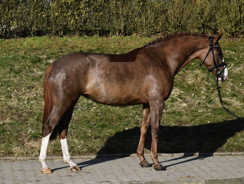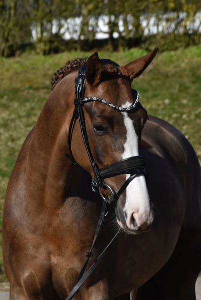 Na sprzedaż wystawiona jest 4-letnia, ok. 160 cm wzrostu klacz od Benicio x Zoom. Sole Mio jest bardzo grzeczna zarówno w codziennym obchodzie, jak i pod siodłem, pewnie reaguje na pomoce, wykazuje się bystrością i odwagą. Z trzema dobrymi, w górę ułożonymi podstawowymi chody, oraz bardzo harmonijnym profilem bocznym, zapowiada się na doskonałego konia do ujeżdżenia. Przy dalszym szkoleniu będzie także świetnym koniem do przejścia na wyższy poziom, a już teraz może być jeżdżona przez młodzież. Posiadamy rentgenogramy bez zastrzeżeń. ‼️ W przypadku zainteresowania i chęci obejrzenia filmów, prosimy o kontakt wyłącznie telefoniczny lub przez WhatsApp pod numer 017621729218. Zapytania przez eBay lub ehorses nie będą rozpatrywane. ‼️ Koń nie jest dostępny do sprzedaży na raty i nie można go odłożyć w celu zakupu.