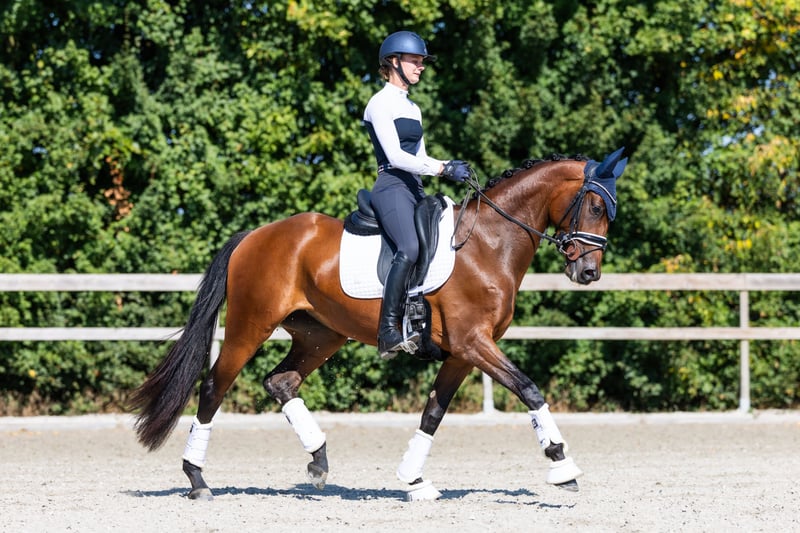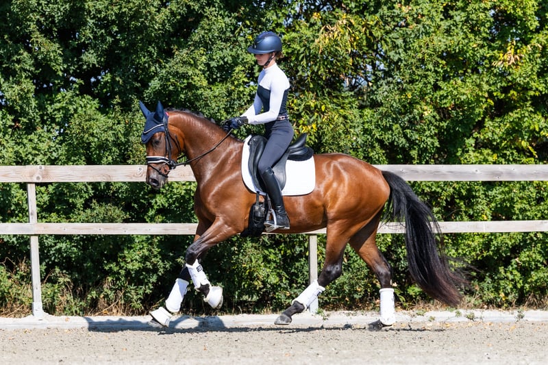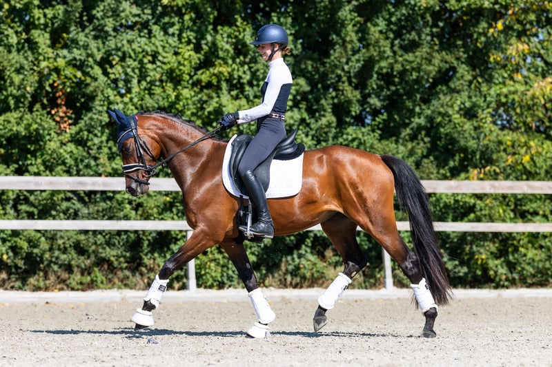 Maak kennis met Shirley May, een KWPN merrie uit 2022, gefokt door Incognito uit een Painted Black moeder, momenteel staande op 1,63 m. Dit elegante en getalenteerde jonge dressuurpaard toont natuurlijke aanleg, snel leren en een sterke bereidheid om te werken. Ze is bij uitstek geschikt voor een getalenteerde jonge ruiter, aangezien ze ervan houdt om te presteren, maar ook baat heeft bij deskundige begeleiding. Shirley May wordt gereden en gepresenteerd door ruiter Mette Vossen, die haar elegantie en potentieel naar voren brengt. Shirley May weerspiegelt de kwaliteit en toewijding van FAB Stables BV – die veelbelovende paarden presenteert en opleidt voor de toekomst van de dressuursport.
