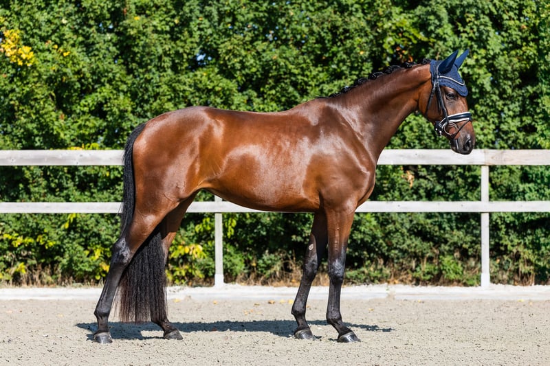 Lernen Sie Shirley May kennen, eine KWPN-Stute von 2022, von Incognito aus einer Painted Black-Stute, die derzeit eine Höhe von 1,63 m hat. Dieses elegante und talentierte junge Dressurpferd zeigt natürliche Fähigkeiten, schnelles Lernen und eine starke Arbeitsbereitschaft. Sie eignet sich ideal für einen talentierten jungen Reiter, da sie es liebt, zu performen, jedoch von geschickter Anleitung profitiert. Shirley May wird von der Reiterin Mette Vossen geritten und präsentiert, die ihre Eleganz und ihr Potenzial zur Geltung bringt. Shirley May spiegelt die Qualität und das Engagement von FAB Stables BV wider – sie präsentiert und züchtet vielversprechende Pferde für die Zukunft des Dressursports.