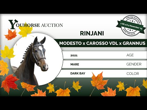 De vierjarige Rinjani is een bloedpaard dat zich al heel fijn laat rijden. Ze heeft een groot hart en springt graag. Vader Modesto was jarenlang de sterkhouder binnen het Franse team met Jean-Marc Nicolas. We kennen hem als vader van Bugatti (1.60m GP) en Igor VL (1.55m GP). Moeder Fioladora-W stamt af van Carosso VDL (1.40m springen). Grootmoeder Ladora (Grannus x Ariban xx) behaalde de predikaten keur en prestatie, onder meer door drie nakomelingen op 1.40m niveau.