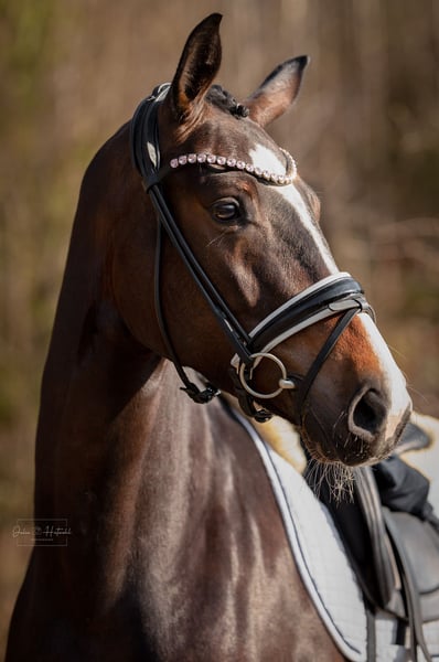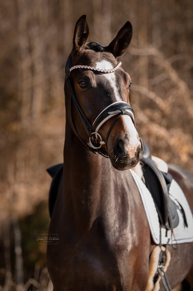 Bloomi ist eine 4-j Stute, die vor Kurzem angeritten wurde und sich unter dem Sattel sehr gelehrig und rittig zeigt. Hervorzuheben ist ihre Unerschrockenheit- auch erste Geländeritte meistert sie ruhig und abgeklärt. Sie lässt sich brav verladen, ist völlig unkompliziert beim Schmied und im täglichen Umgang und verträglich mit anderen Pferden. Wir wünschen uns ein jungpferdeerfahrenes, liebevolles Zuhause mit viel Weidegang in Gesellschaft mit anderen Pferden, wo ihr Potential weiter gefördert wird. Aktueller TÜV liegt vor.