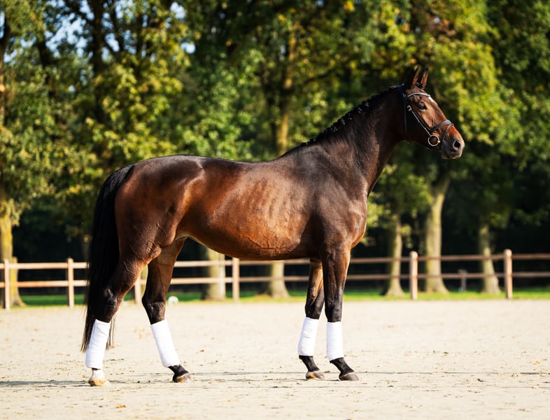 Sind Sie auf der Suche nach einem talentierten Sportpferd mit Qualität, Einstellung und Ausstrahlung? Lernen Sie Rheia GG kennen, eine hübsche und arbeitswillige Stute aus einer bewährten Sportlinie. Rheia ist die Tochter des Grand-Prix-Hengstes Hermes (Easy Game), bekannt für sein kraftvolles Hinterbein, Leichtfüßigkeit, Arbeitswille und Intelligenz. Auf der Mutterseite stammt sie von einer Stute mit exzellenter Bewegungsmechanik und starkem Fundament ab. Eine Mutterlinie, die bereits mehrere Pferde in die leichte Tour und höher gebracht hat! Rheia ist ein junges Pferd, aber äußerst gelassen im Umgang, lernwillig und hat eine angenehme Anlehnung unter dem Reiter. Seit März dieses Jahres wird sie leicht geritten. Ein freundliches Wesen und Qualität in einem. Hermes x Generation Odette B / Stute / 2021 / 1,73 m / KWPN / Ster / D-OC / PROK / WFFS-frei Rheia wurde geröntgt (freigegeben), inklusive Hals und Rücken, PROK. Sie wird selektiv verkauft. Ich spreche Deutsch, I speak English (Harry van Gameren, Züchter und Besitzer)