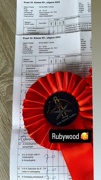 Ta klacz zdobyła tytuł mistrzyni na przeglądzie klaczy Gelderland/Flevoland w kategorii klaczy czteroletnich i starszych w tym roku. Dwa tygodnie temu uzyskała wynik IBOP z wynikiem 82 punktów: 7,5 chód krok, 8,5 galop, 8,5 dżwiga, 8,0 elastyczność, 8,5 postura i równowaga, 8,5 ujeżdżalność, 8,0 predyspozycje do ujeżdżenia. Ponieważ nie została jeszcze oficjalnie oceniona przez wykwalifikowanego lekarza weterynarii, obecnie posiada status Keur, ale nie jest jeszcze elita. Obecnie jest trenowana w poziomie M1 w ujeżdżeniu. Matka jest klasyfikowana w kategorii Inter I i jest w treningu do Inter II. W wieku 5 lat brała udział w Mistrzostwach Świata Młodych Koni. Z tej samej matki pochodzą również dwa zatwierdzone ogiery, w tym Dutch Dream. Dostępne zdjęcia rentgenowskie. Uwaga! Wszystkie nasze ceny są netto, bez 21% VAT.