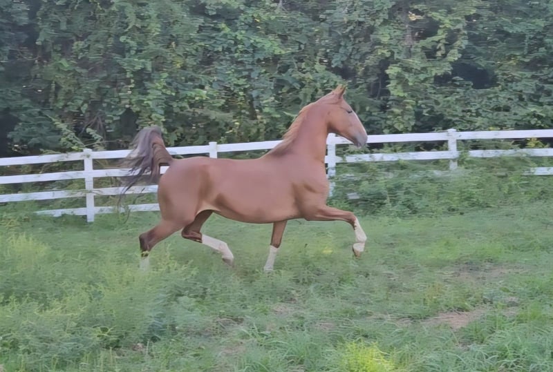 EINE SCHÖNE UND KORREKTE STUTE, HAT 2 FANTASTISCHE FOHLEN GEZEUGT! 5 JAHRE ALT, KANN ALS ZUCHTSTUTE EINGESETZT WERDEN ODER WIEDER IN ARBEIT GEBRACHT WERDEN, UM ZU SHOWEN. EINFACHE PERSÖNLICHKEIT UND LEICHT ZU HALTEN.