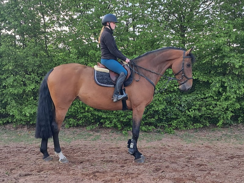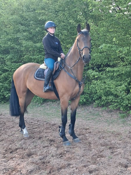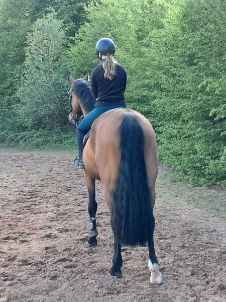 Hier sucht eine bildhübsche 5jährige braune Stute ihren Herzens ❤️ Mensch. Rizaloni ist ein absolutes Traumpferd mit einer guten Abstammung und sehr viel Reitqualität ausgestattet. Sie reagiert sehr fein auf die Hilfen, geht leicht in die Anlehnung, dabei sitzbequem und auch beim Springen super ehrlich und immer mit einem gleichmäßigen Galopp unterwegs,vor und nach den Sprüngen. Sie hat auch schon ihre ersten Erfahrungen auf dem Turnier sammeln können. Videos können bei Interesse per WhatsApp geschickt werden. Ein Pferd für den ambitionierten Amateur Reiter und Sport Reiter. Wer jetzt Lust bekommen hat , dass Mädchen kennen zu lernen, kann gerne anrufen unter 0178 6526058 und einen Termin Vereinbaren. Probereiten 30 €