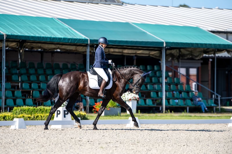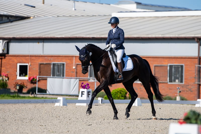 Aufgrund von Lebensveränderungen suchen wir ein bestes 5*-Zuhause für eine fantastische schwarze 4-jährige KWPN-Stute mit ausgezeichneten Dressurfähigkeiten. Ralinja ist derzeit 4,5 Jahre alt und etwa 168 cm groß, letztendlich wird sie ein großes Pferd von etwa 171-172 cm sein, jedoch mit einer sehr zarten Struktur. Sie ist eine sehr mutige und umgängliche Stute mit außergewöhnlicher und charakteristischer Bewegung, sehr freundlich zu Menschen und anderen Pferden. Sie ist mit dem Beschlagen und Transport vertraut und hat bereits erste Erfahrungen in Wettbewerben gesammelt. Was am wichtigsten ist, ist ihr Erscheinungsbild und ihre Aktion; sie hat einen großartigen Familiencharakter und eine problemlose Disposition sowie eine gute Konzentration auf den Reiter und die Arbeit, was bei einem jungen Pferd selten ist. Trotz der Tatsache, dass sie erst seit wenigen Monaten geritten wird (seit Februar 2025) und sie nur einmal an Wettbewerben teilgenommen hat - sie hat sich für die Young Horse Champions qualifiziert. Bei der diesjährigen Meisterschaft - der Polnischen Meisterschaft der jungen Pferde - hat sie in ihrer Klasse der 4-Jährigen ausgezeichnet abgeschnitten. Von 28 startenden Pferden in PPMK und MPMK wurde sie als beste Stute klassifiziert, in PPMK (Pferde mit ausländischem Pass) belegte sie einen hohen 5. Platz. Verfügbarkeit über 7 in der Verfügbarkeit. Im Finale am Sonntag erzielte sie über 75%, d.h. eine Note von 75,200.
