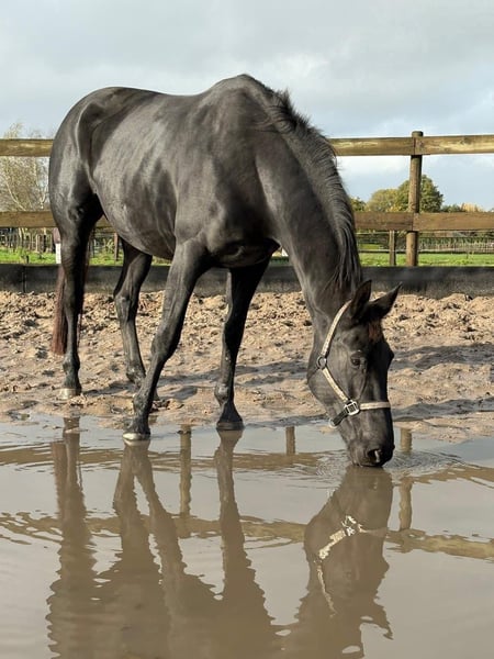 Bloedmooie , gitzwarte , correcte Kjento x Lord Leatherdale merrie Ontmoet Paulina: werkelijk waar een paard uit een sprookje. Met haar diepzwarte vacht en sprekende ogen en mooie , volle bouw is ze een echte verschijning. Paulina is 5 jaar oud, ongeveer 1.72 m hoog en heeft een uitzonderlijke afstamming: Kjento x Lord Leatherdale. Klik HIER voor haar papier . We hebben haar rechtstreeks van de eerste eigenaar overgenomen, waar ze van jongs af aan met veel aandacht is opgegroeid en goed in de hand is geweest. Ze is een echte lieverd met een fijn karakter. Blijft gewoon zonder problemen alleen op stal staan terwijl ze toch heel sociaal is . Paulina is onlangs volledig klinisch en röntgenologisch goedgekeurd, inclusief rugfoto’s. Momenteel zijn we haar training verder aan het oppakken, wat ze met veel talent en inzet doet. Naarmate haar opleiding vordert, zal de prijs meegroeien. Is onlangs door de tandarts behandeld, in bezit van een recent rapport. Prijs: € 9750,- Incl merkzadel en dekje