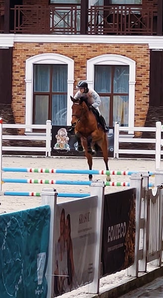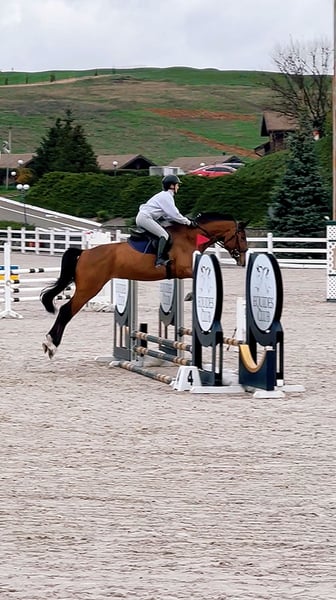 Talented young mare with jumping experience 110 cm on competitions and 120 at home. Absolutely brave, easy to ride. Clear X-rays. Based in Lviv.