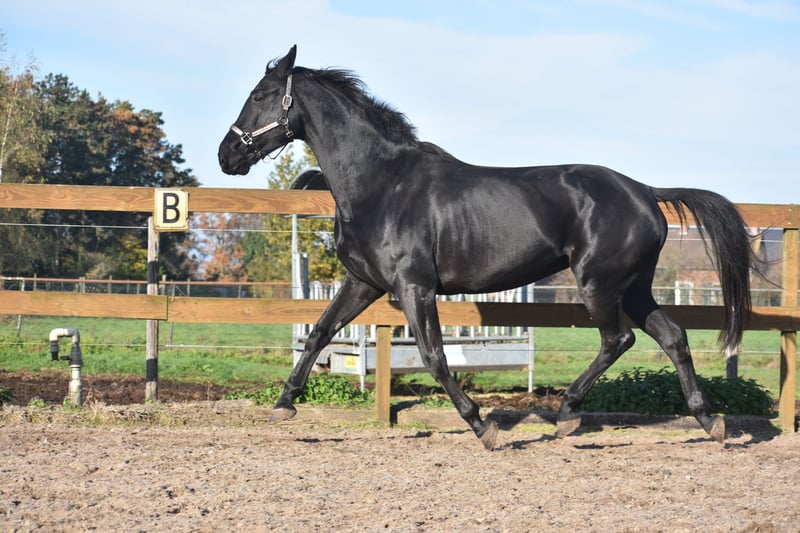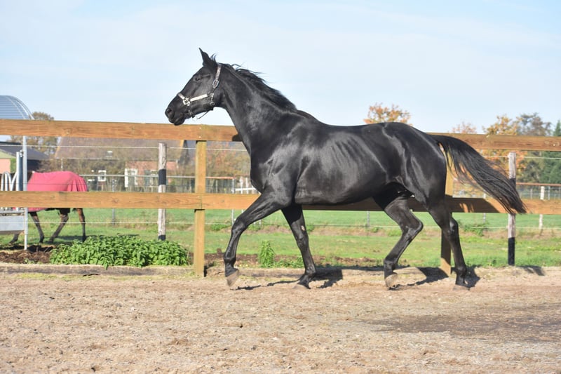 Lerne Paulina kennen: Ein echtes Pferd aus einem Märchen. Mit ihrem tiefschwarzen Fell, ausdrucksvollen Augen und ihrer schönen, kräftigen Erscheinung ist sie eine imposante Erscheinung. Paulina ist 5 Jahre alt, etwa 1,72 m groß und besitzt eine außergewöhnliche Abstammung: Kjento x Lord Leatherdale. Wir haben sie direkt vom Erstbesitzer übernommen, bei dem sie von klein auf mit viel Liebe aufgezogen wurde und gut im Umgang ist. Sie ist eine echte Schmusemaus mit einem angenehmen Charakter. Sie bleibt problemlos allein im Stall stehen, obwohl sie sehr sozial ist. Paulina wurde kürzlich vollständig klinisch und röntgenologisch untersucht, inklusive Rückenscreening. Momentan bauen wir ihre Ausbildung weiter aus, was sie mit viel Talent und Engagement zeigt. Mit fortschreitender Ausbildung wird auch der Preis steigen. Preis: 9.750 € inklusive Marken-Sattel und Abschwitzdecke