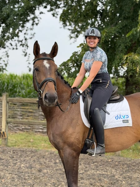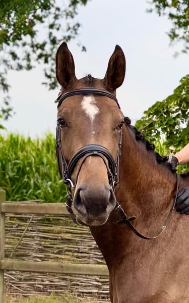 Zeer fijne 5 jarige merrie, werd zadelmak gemaakt in mei 2025 en is nu al het meest voorbeeldige kind uit de klas. Superbraaf en verstandig, werkt graag en leert eenvoudig dingen bij. Basis voor een vierjarige is volledig gekend en is opgestart met het werk van niv 2/5jarigen, gaat ook op wandeling en verplaatsing zonder problemen. Braaf bij smid, veearts en in transport. Goed aan de maat, niet kijkerig/bang, eenvoudig opstappen en wegrijden. Ging ook al mee op wedstrijd, won meteen eenvoudig de proef., fijn paard om mee aan de slag te gaan.