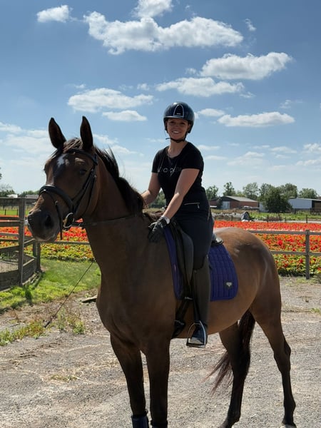 Bardzo przyjemna 5-letnia klacz, przygotowywana do siodłania w maju 2025 roku, już teraz jest najbardziej wzorowym dzieckiem w klasie. Bardzo łagodna i rozsądna, chętnie pracuje i łatwo przyswaja nowe rzeczy. Podstawy dla czterolatki są w pełni opanowane, rozpoczęła już prace na poziomie 2/5-latków, jeździ również na spacerach i bez problemu radzi sobie z przesuwaniem. Łagodna w trakcie wizyt u kowala, weterynarza i podczas transportu. Dobrze dopasowana do rozmiaru, nie jest lękliwa ani bojaźliwa, łatwo wsiada się i odjeżdża. Już brała udział w zawodach, od razu wygrała próbę bez problemu. To świetny koń do pracy i nauki.